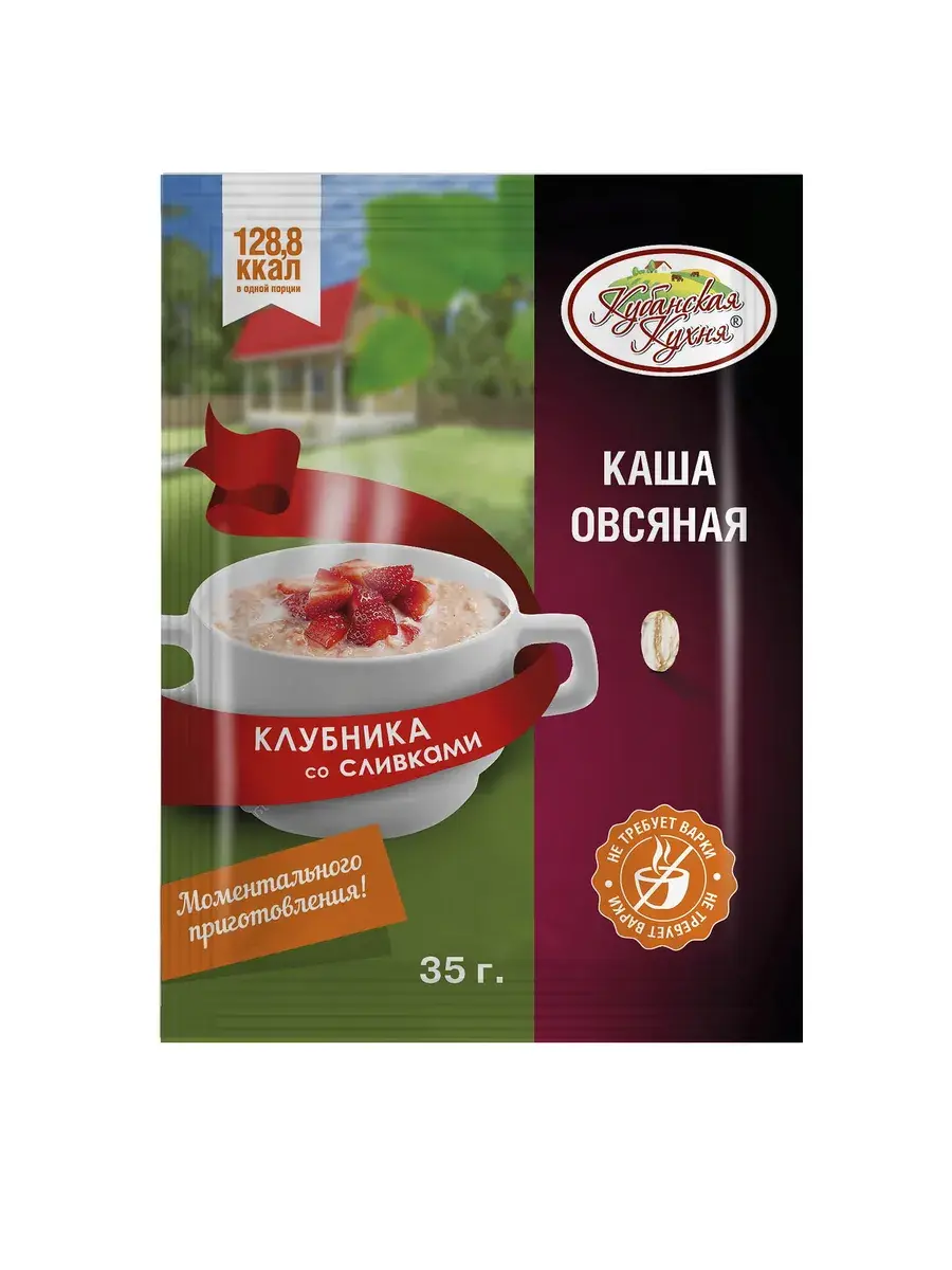 Каша овсяная "Клубника со сливками" "Кубанская кухня" 35г- 2 шт