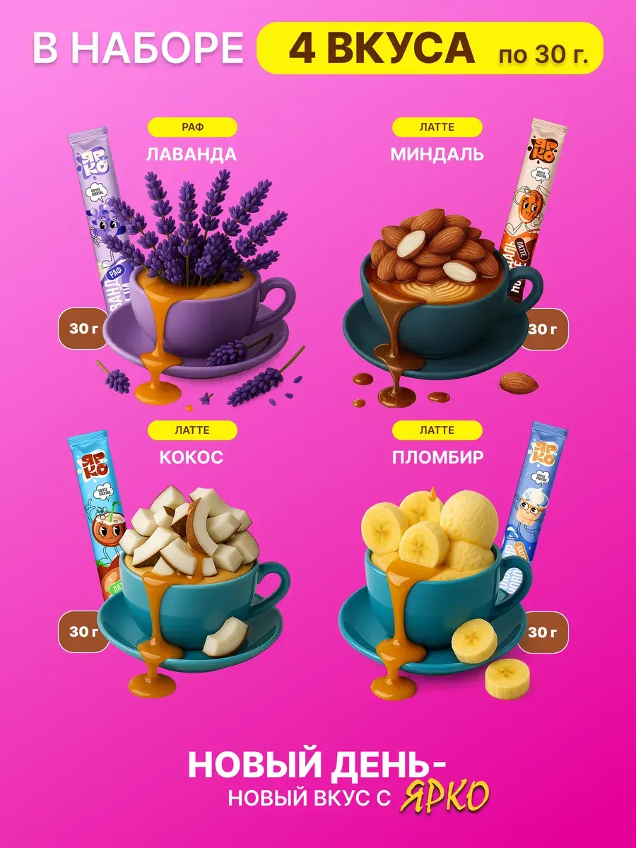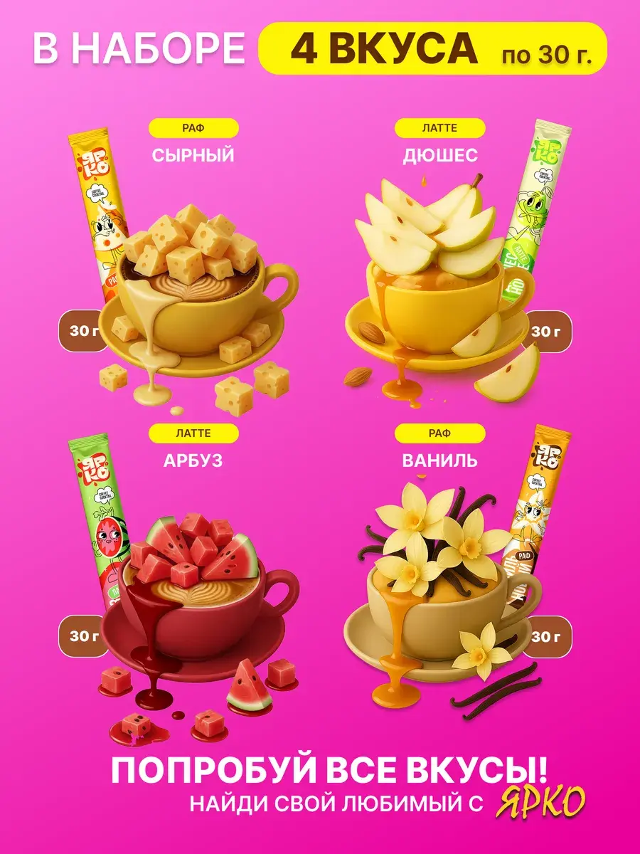 Набор из 8 вкуснейших кофейных напитков по 30 гр необычных вкусов:
