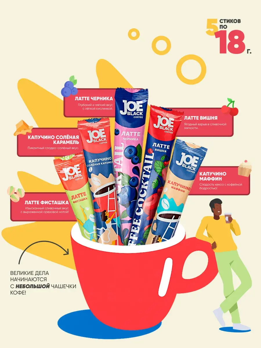 Приготовление идеального кофе теперь стало еще проще с нашим набором растворимого кофе в пакетиках! Наслаждайтесь богатым ароматом и насыщенным вкусом лучших сортов арабики, которые были сублимированы для сохранения всех полезных свойств кофе.