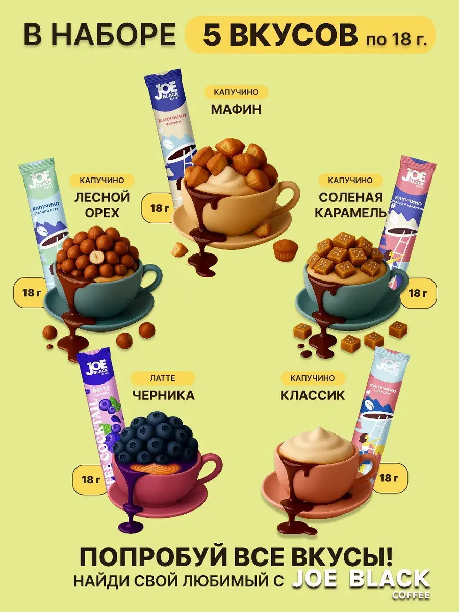 Набор из 15 вкусов ( 15 штук) вкуснейших кофейных напитков необычных вкусов.