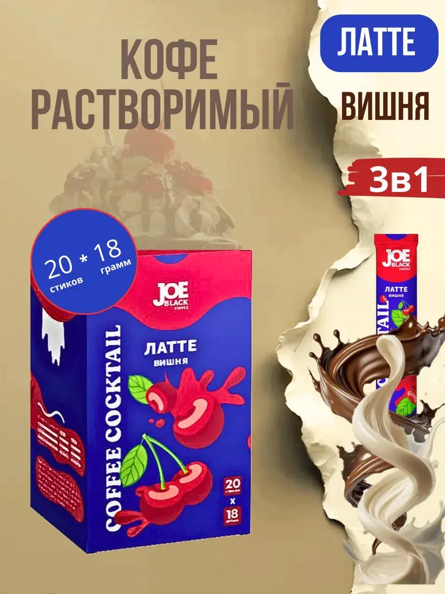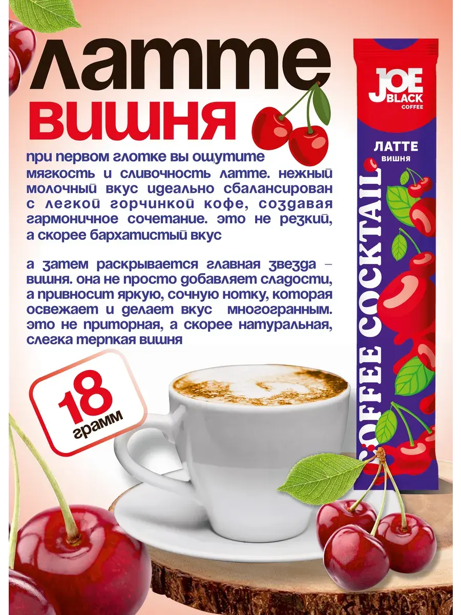 Кофе растворимый 3 в 1 Joe Black Латте Вишня 20 по 18 гр