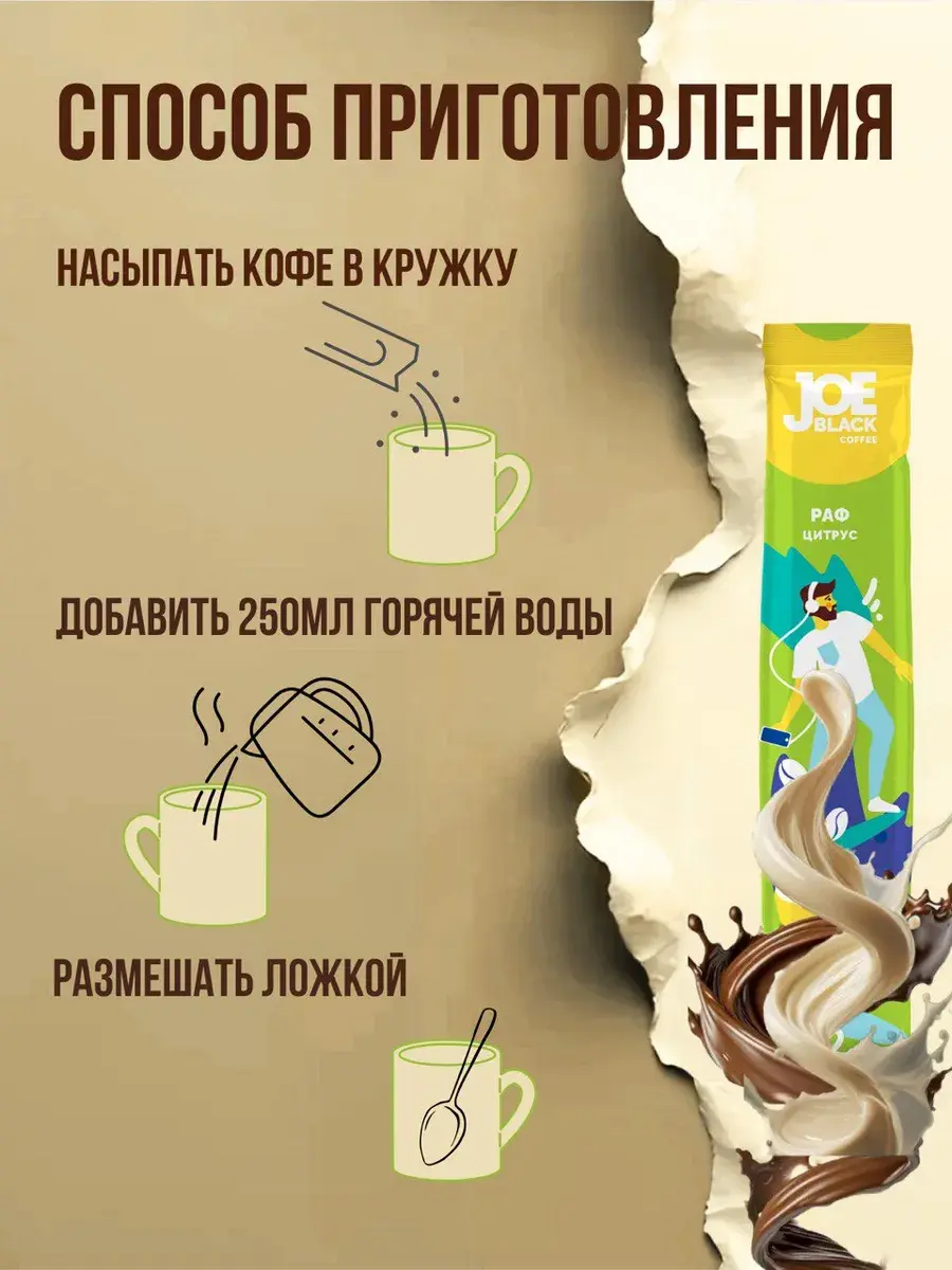 Время — самый ценный ресурс, который мы имеем. Представьте, вы завариваете один стик любимого Joe Black. Настолько вкусно, что срочно нужен ещё один. Снова отвлекаться от дела, снова заваривать любимый Joe Black. Именно поэтому, встречайте Joe Black! В два раза быстрее, в два раза экономнее, в два раза вкуснее. Экономьте своё время наслаждаясь любимым Joe Black