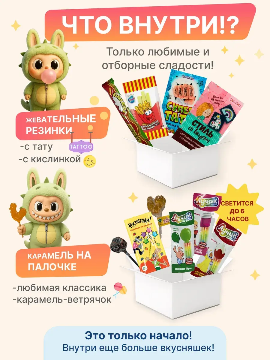 Наш бокс это интересная идея для подарка взрослым и детям. Подарите детские конфеты на любой праздник, презент запомнится эмоциями и точно удивит! Будь то вечеринка по случаю дня рождения вашего ребенка или ностальгическое угощение для друга, эта коллекция обещает добавить немного волшебства к каждому случаю.