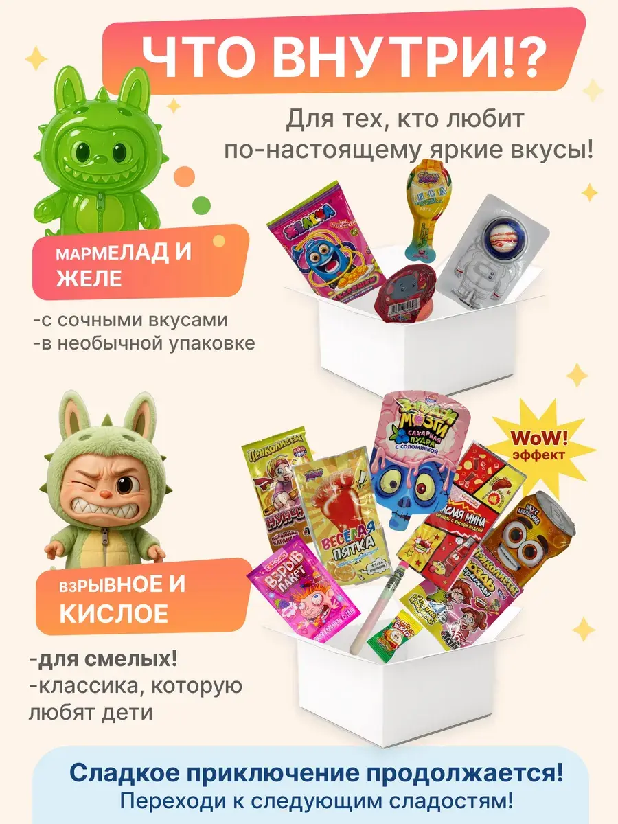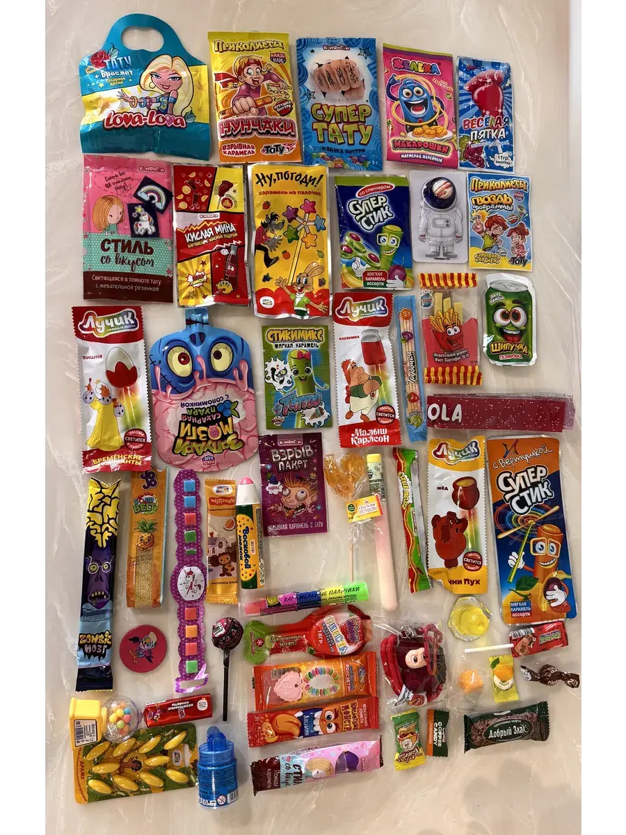 Вкусы страны чудес: Жевательная резинка, знаменитые кислые конфеты из Китая, веселые челленджи, фруктовые тянучки, бомбически кислые карамельки, воздушный зефир, взрывная карамель с тату, светящиеся татуировки, кислый мармелад, мармелад насекомые, фруктовые и молочные тянучки, сочные леденцы, шоколадные монеты, карамель на палочке из детства Петушок, желе. Натуральные сладости для детей на праздник вызовут настоящий восторг вкусными конфетами на палочке похожими на чупа чупс, сладким безалкогольным напитком на основе сока и желе, растворимый напиток Invite. Невероятное разноообразие Импортных сладостей из Китая, России и Азии подойдет в качестве подарка на Новый год, Рождество, День влюбленных, для сына и дочки, для девочки и мальчика, для учителя, для классного руководителя, для друга, для подруги, для мамы и для папы, как самостоятельный презент и как дополнение к основному подарку, станет сюпризом с приколом для друга, для кого пранк, для кого-то знак внимания, а также как подарок угощение к семейному чаепитию или подарок к чаю мальчикам и девочкам в садик, детский сад, радостный мини набор,сладкий подарок детям, сладости для детей.