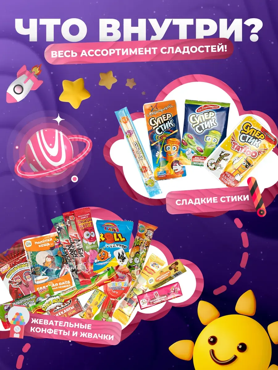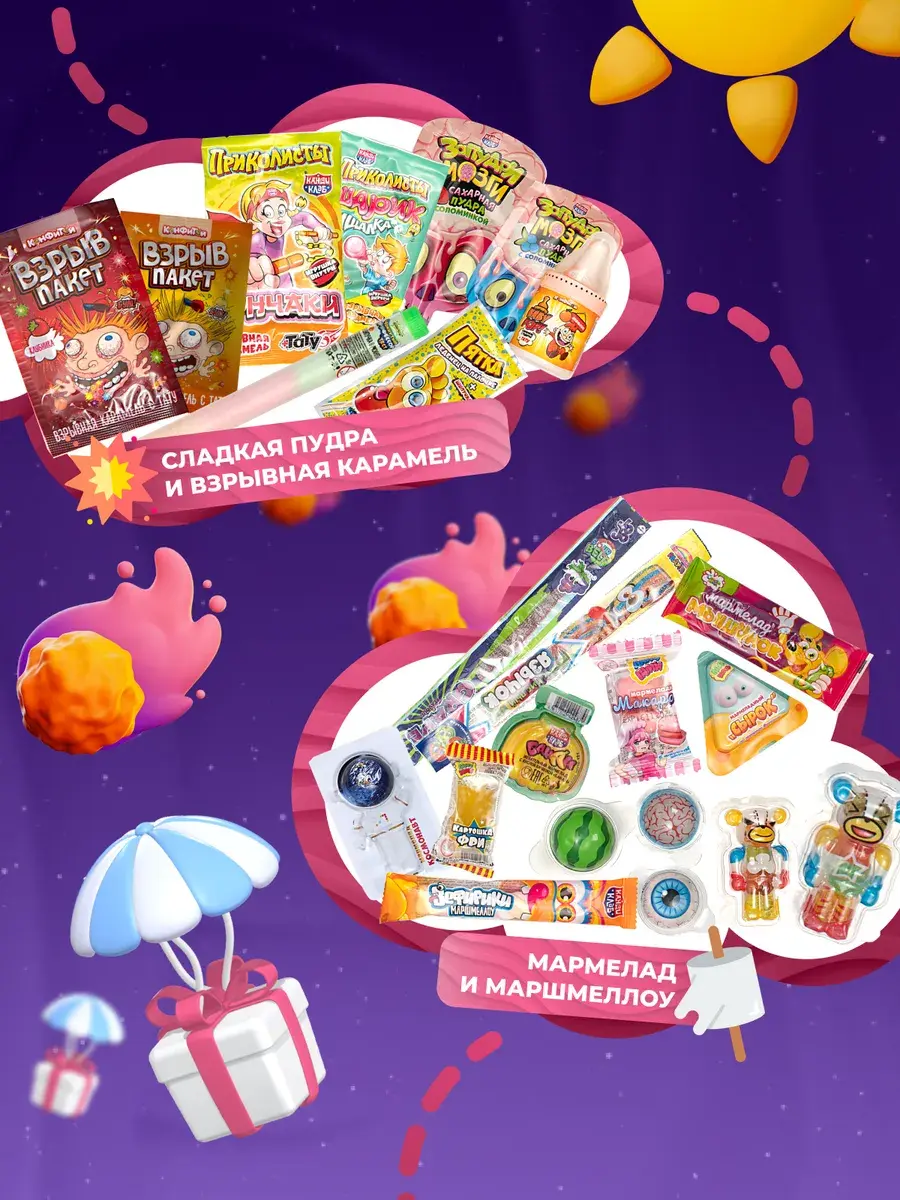 Вкусы страны чудес: Жевательная резинка, знаменитые кислые конфеты из Китая, веселые челленджи, фруктовые тянучки, бомбически кислые карамельки, воздушный зефир, взрывная карамель с тату, светящиеся татуировки, кислый мармелад, мармелад насекомые, фруктовые и молочные тянучки, сочные леденцы, шоколадные монеты, карамель на палочке из детства Петушок, желе. Натуральные сладости для детей на праздник вызовут настоящий восторг вкусными конфетами на палочке похожими на чупа чупс, сладким безалкогольным напитком на основе сока и желе, растворимый напиток Invite. Невероятное разноообразие Импортных сладостей из Китая, России и Азии подойдет в качестве подарка на Новый год, Рождество, День влюбленных, для сына и дочки, для девочки и мальчика, для учителя, для классного руководителя, для друга, для подруги, для мамы и для папы, как самостоятельный презент и как дополнение к основному подарку, станет сюпризом с приколом для друга, для кого пранк, для кого-то знак внимания, а также как подарок угощение к семейному чаепитию или подарок к чаю мальчикам и девочкам в садик, детский сад, радостный мини набор,сладкий подарок детям, сладости для детей.