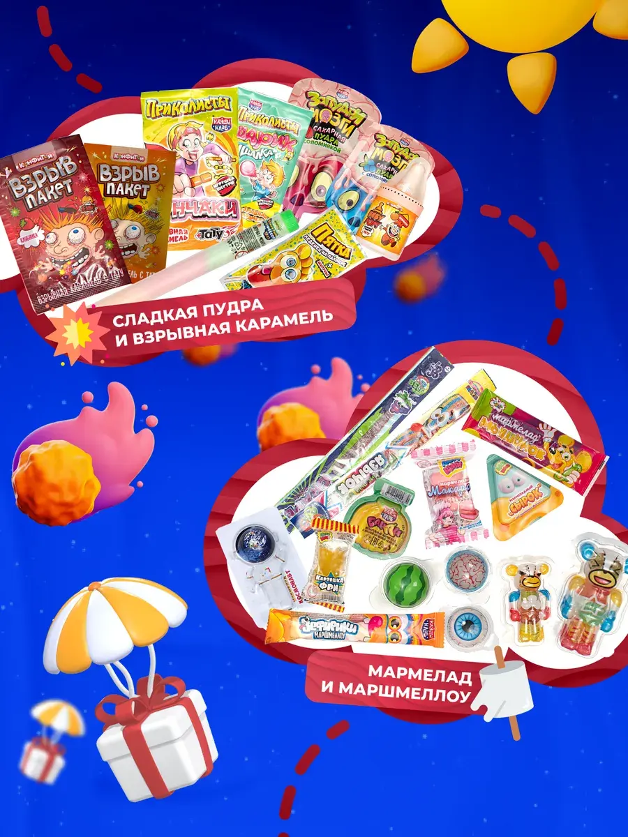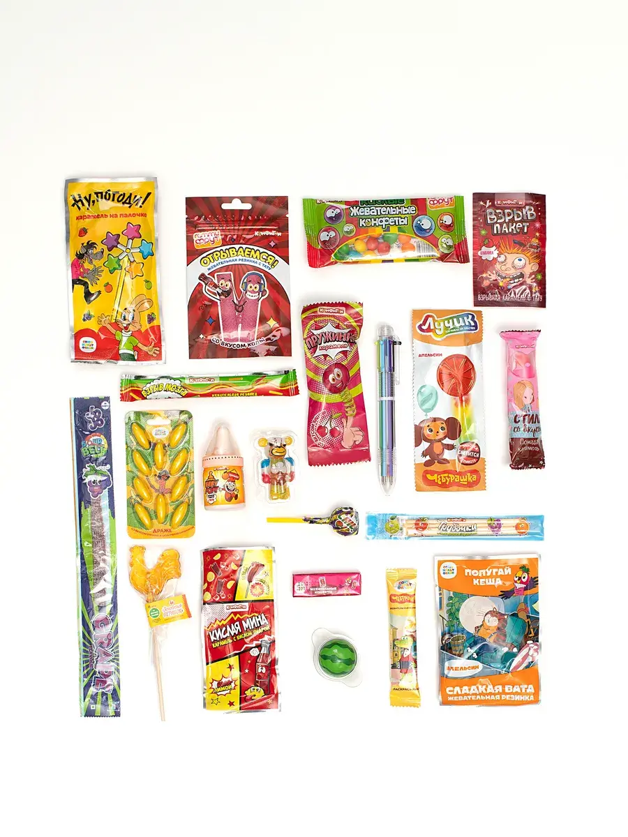 Жевательная резинка, знаменитые кислинки конфеты из Китая, веселые челленджи, леденец, чупа чупс, фруктовые тянучки, бомбически кислые карамельки, воздушный зефир, взрывная шипучка карамель с тату, светящиеся татуировки, кислый мармелад, мармеладки насекомые, фрутомикс фруктовые и молочные тянучки, сочные монпансье леденцы, шоколадные монеты, карамель на палочке из детства Петушок, желейные шарики. Натуральные сладости для детей на праздник вызовут настоящий восторг вкусными конфетами на палочке похожими на чупа чупс, сладким безалкогольным напитком на основе сока и желе. Невероятное разноообразие Импортных сладостей из Китая, России и Азии подойдет в качестве подарка на Новый год, Рождество, 8 марта, День влюбленных, для сына и дочки, для девочки и мальчика, для учителя, для классного руководителя, для друга, для подруги, для мамы и для папы, бабушке или дедушке как самостоятельный презент и как дополнение к основному подарку, станет сюпризом с приколом для друга, для кого-то знак внимания, а также как подарок угощение к семейному чаепитию или подарок к чаю для девочки и пацана, детский сад,,сладкий подарок детям, сладости для детей.