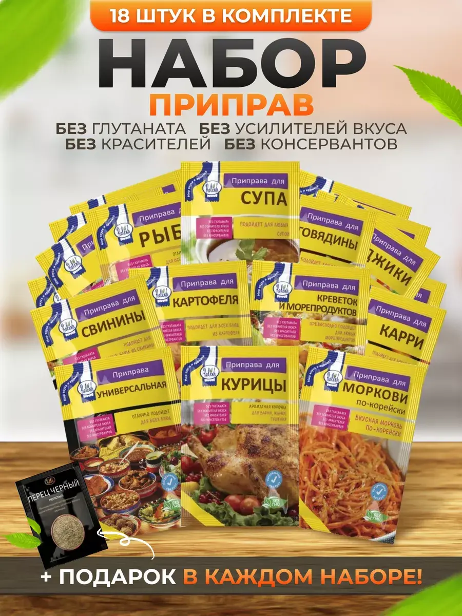 Набор 18 приправ + Перец молотый 10 гр в подарок . Идеальный подарок для женщины и мужчины.