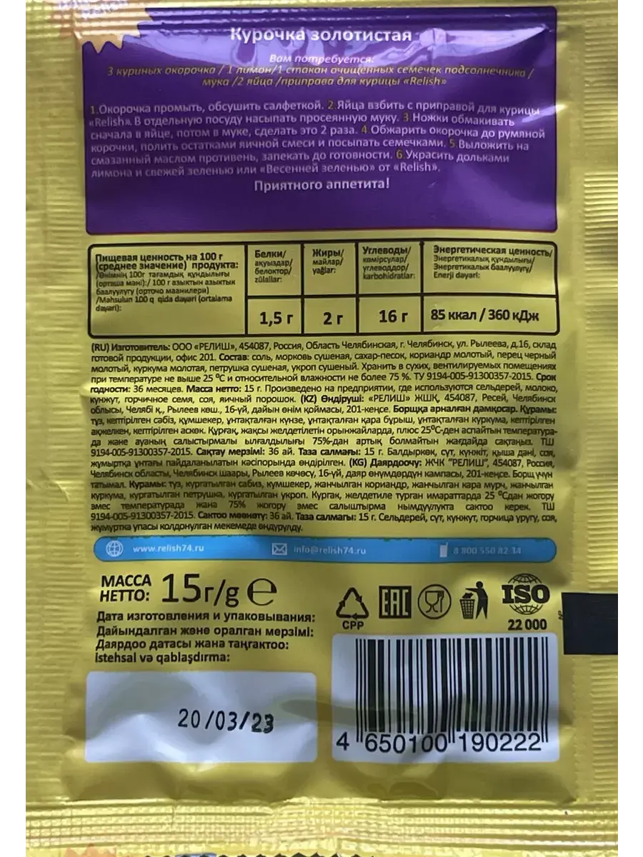Назначение приправы/специи