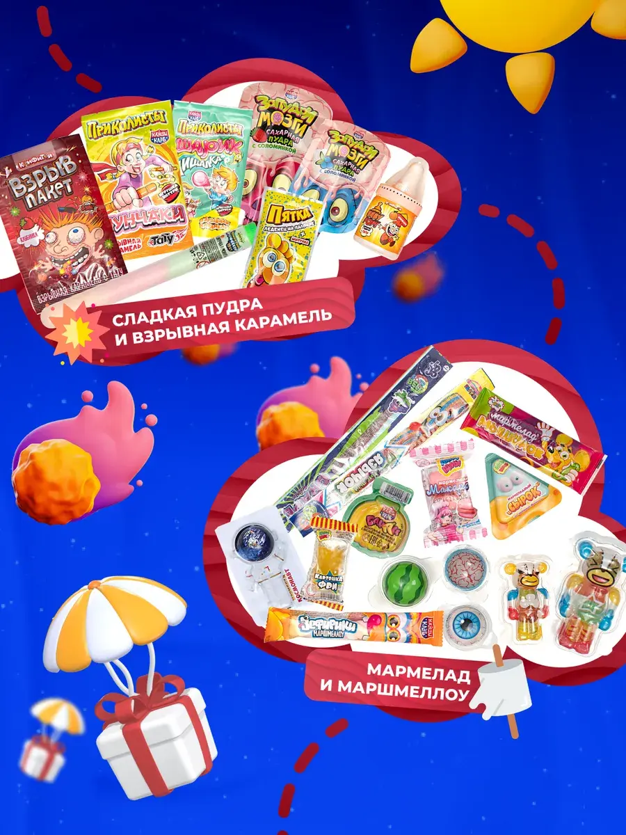 Сладкий бокс для детей — это не просто коробка сладостей, а настоящий праздник эмоций! Внутри подарочной коробки собрано 21 лакомство: шоколадные батончики, жевательные конфеты, мармелад, леденцы и жвачки.